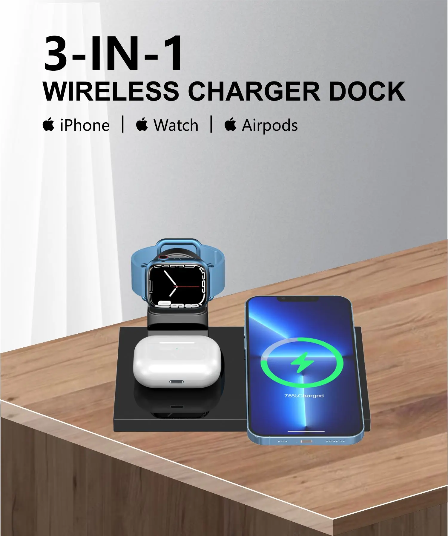 3 in 1 Wireless Charging Station,Charger Station ,Foldable Charging