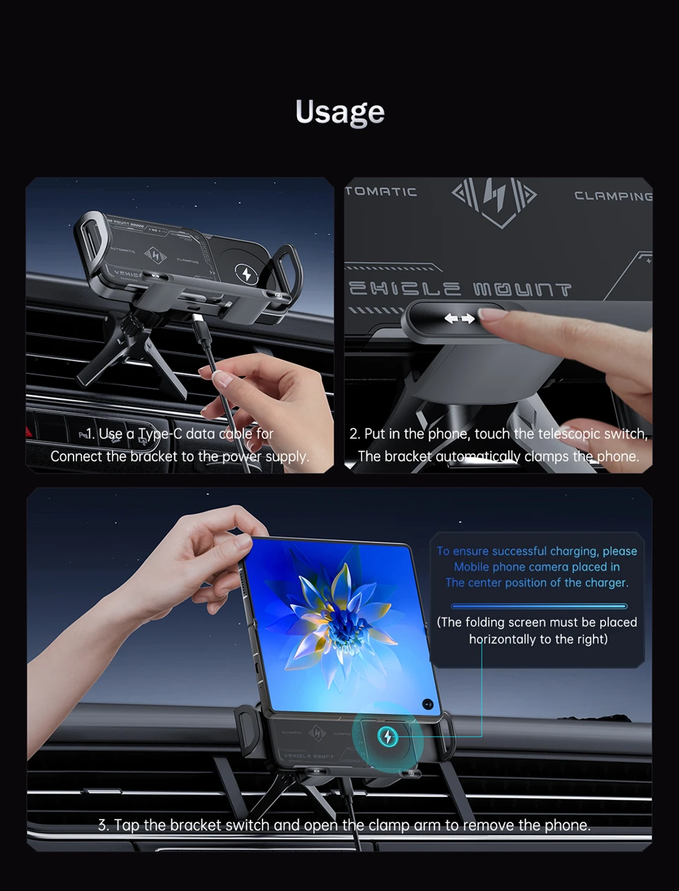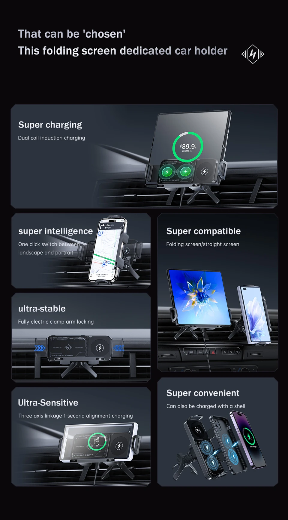 Car Wireless Charger Dual Coil Fold Screen Phone Fast Charging for S