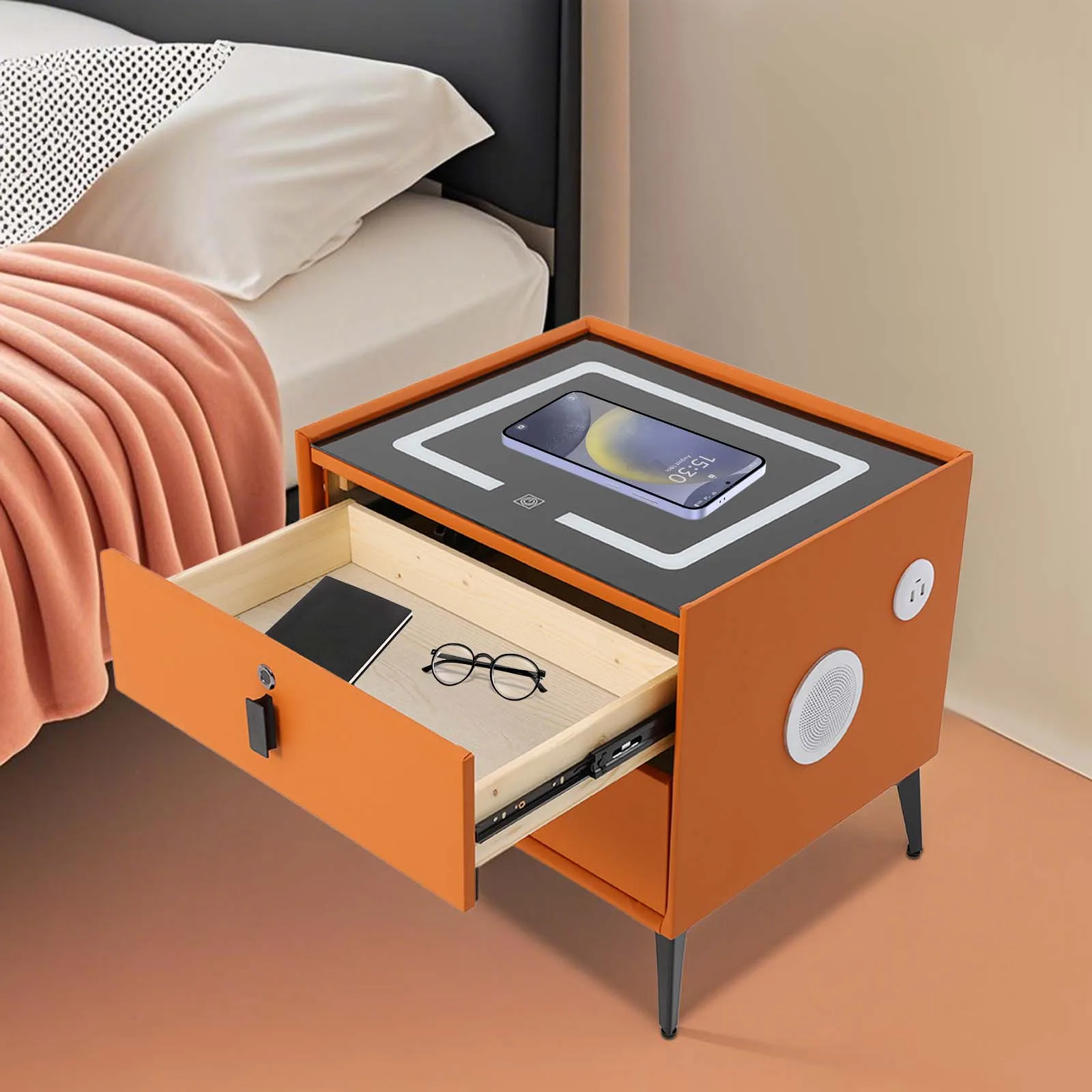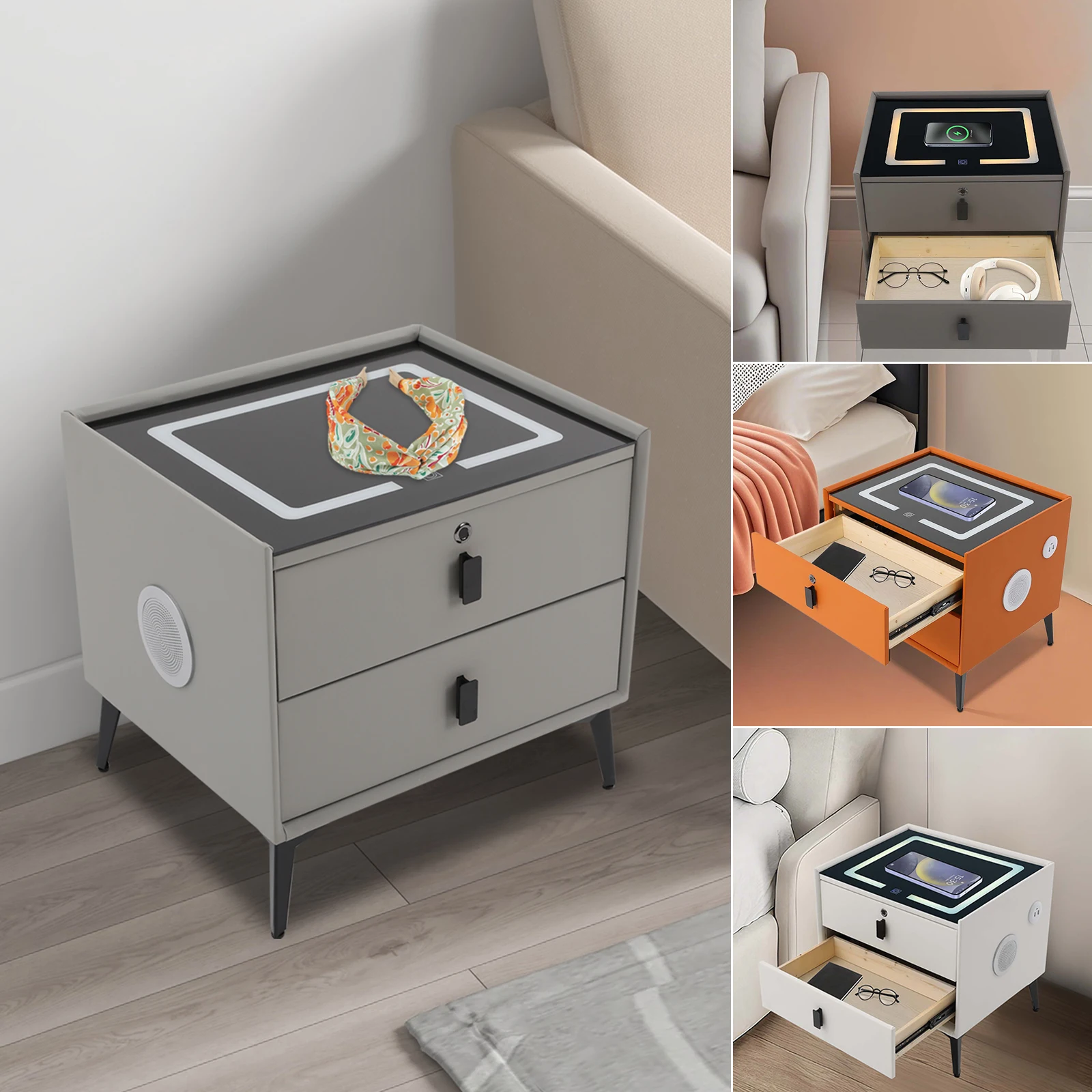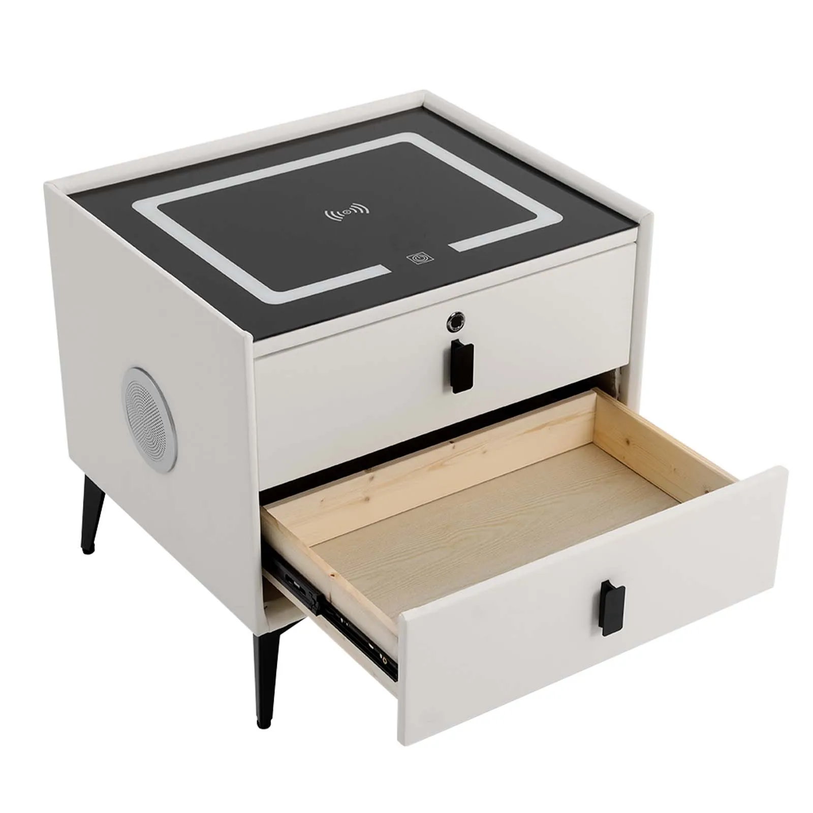 Modern Rectangular Bedside Table with Drawers Bluetooth Speaker Smar