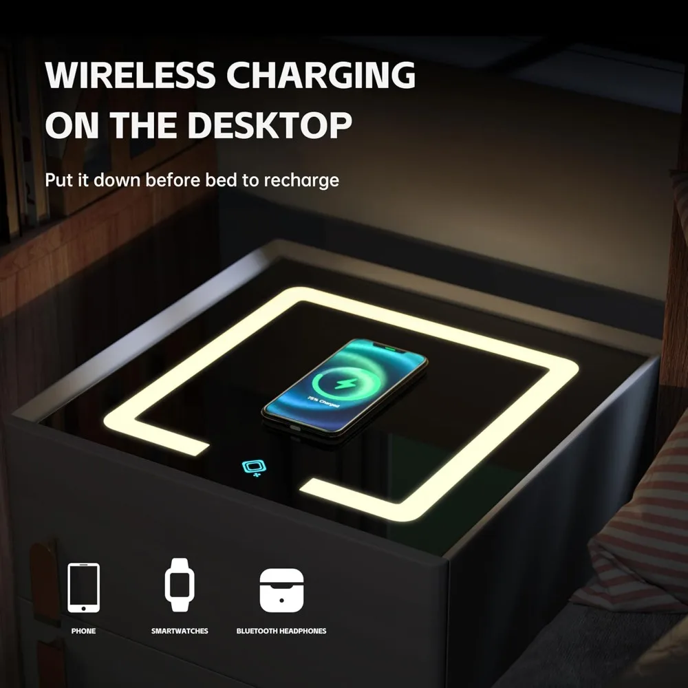 - Nightstand with Charging Station: One of the standout features of our nightstand is that it comes with wireless charging ports. Gone are the days of searching for a wall outlet or untangling messy cables. With the built-in charging station on this nightstand, perfect for your bedroom or living room