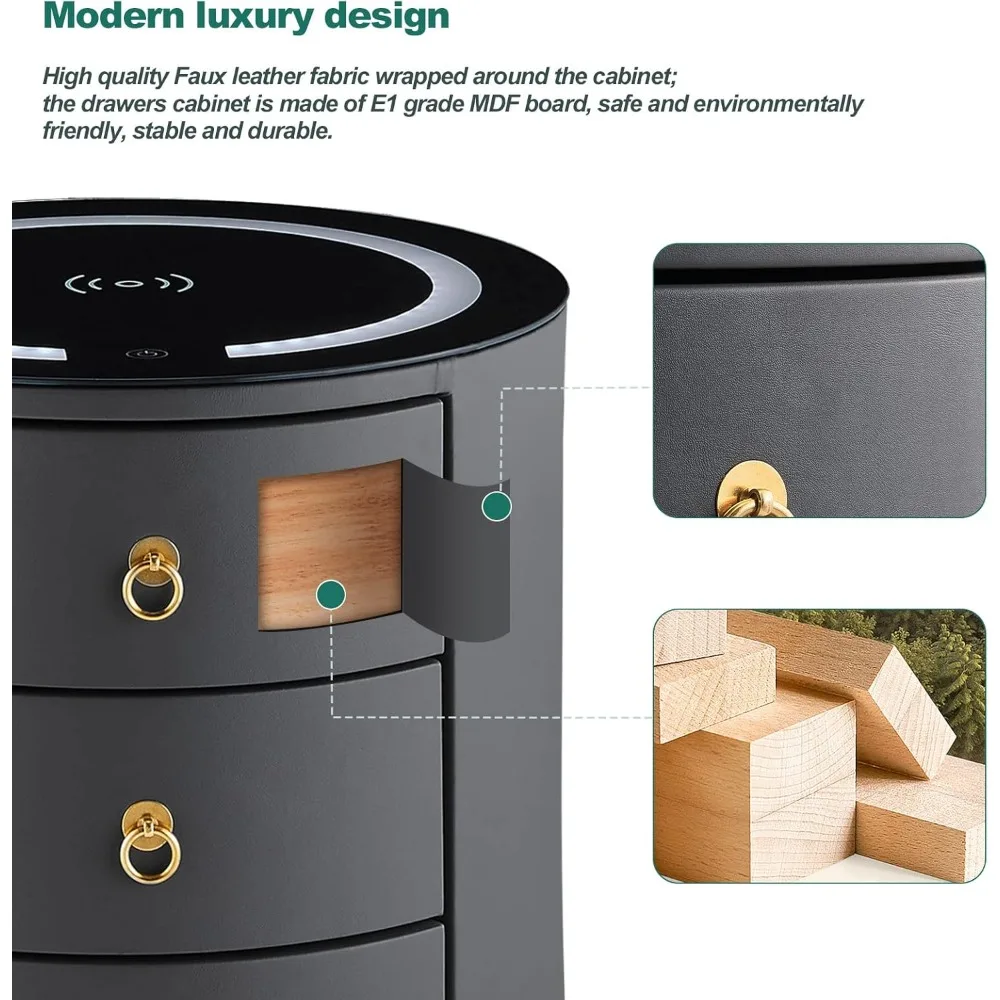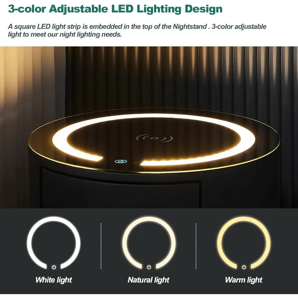 - 📖【Multifunction LED Light Bedside Table】This round storage cabinet doesn't need to be installed and saves installation time.This smart bedside cabinet would make a great birthday present or holiday gift.The 3 drawers cabinet can be used in the living room, bedroom, office as a nightstand, sofa side table, chest of drawers etc.